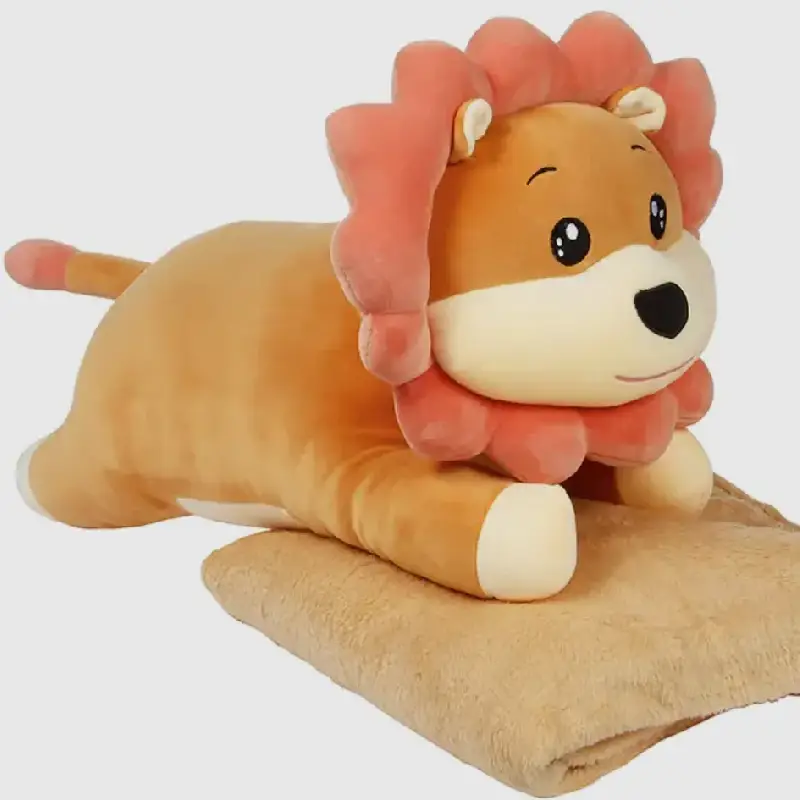 Împletește joaca și confortul într-un singur produs cu Leul de pluș cu păturică moale inclusă!