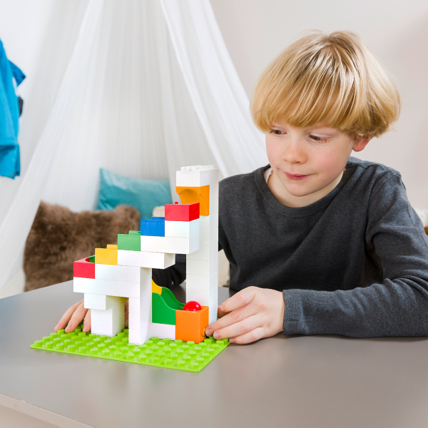 Fie cu o brosura de instructiuni, fie cu jocul liber, construirea unui traseu de marble run stimuleaza memoria de lucru si imbunatateste capacitatea de gandire analitica.