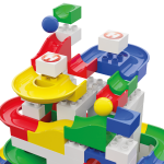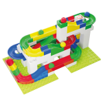 Marble Run Circuit cu Bile 123Piese contine tot ce aveti nevoie pentru a construi piste mari de marble run: doua placi de baza (16 x 22,4 cm) cu 140 de butoane, o multime de elemente de rulare, blocuri de constructie si patru piste de marble run colorate.