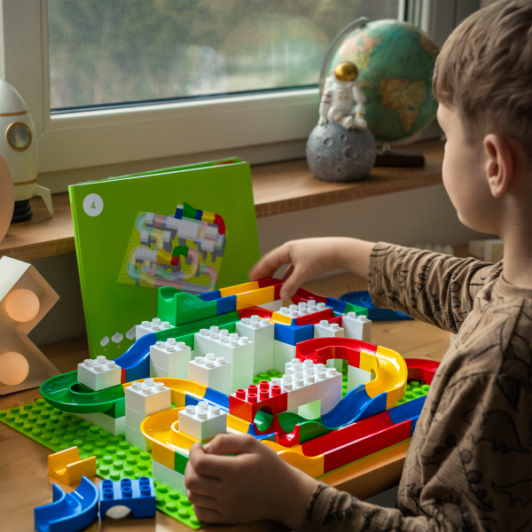 Fie cu o brosura de instructiuni, fie cu jocul liber, construirea unui traseu de marble run stimuleaza memoria de lucru si imbunatateste capacitatea de gandire analitica.