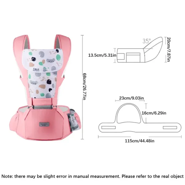 - Suport ergonomic pentru șolduri și coloană: Poziția „M” sănătoasă pentru dezvoltarea corectă a șoldurilor copilului.