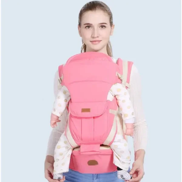 Marsupiu Multifunctional Reglabil si Respirabil cu Scaunel Roz este un accesoriu practic pentru părinți și o modalitate comodă de a purta un copil mic sau un bebeluș în timpul activităților zilnice.