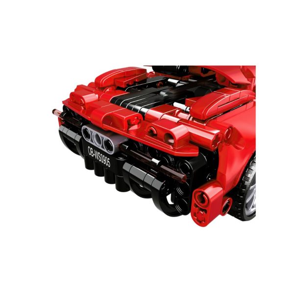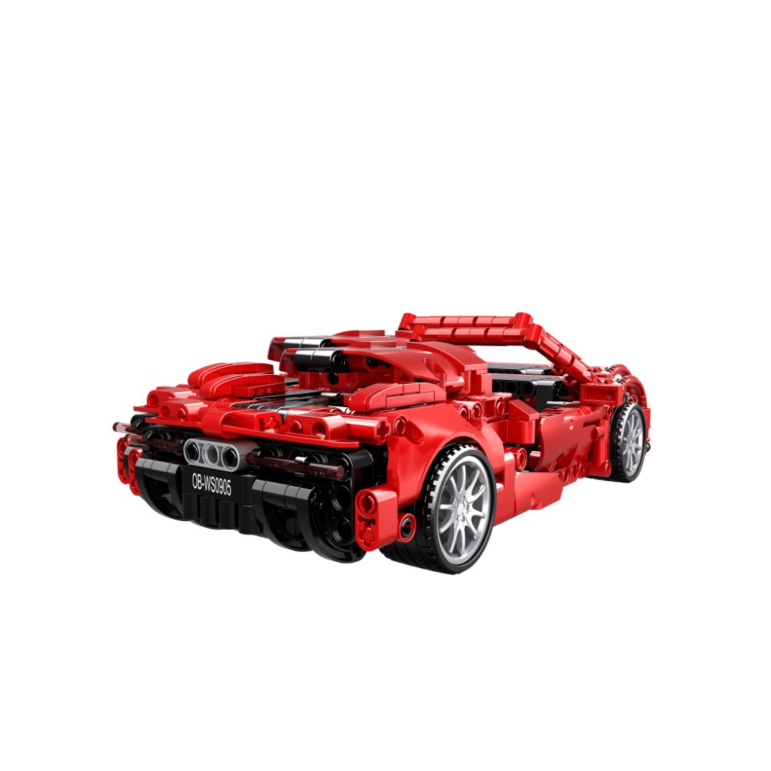 Masina sport rosie, care contine 482 de piese compatibile cu marcile traditionale, un motor de tragere inapoi si instructiuni de constructie. Imprimare de inalta calitate in loc de autocolante. Stifturi tehnice in culoarea principala a masinii.