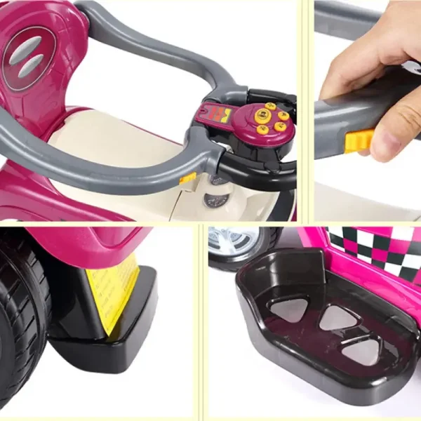 Cumpără acum Mașinuța Roz cu Mâner Parental și Muzică și oferă-i copilului tău o experiență de plimbare plină de bucurie și siguranță!