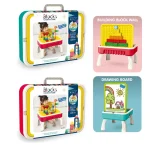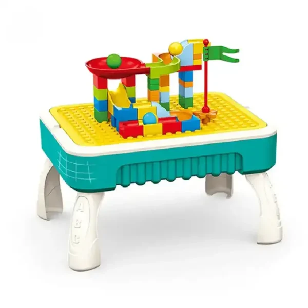 Transformă joaca în învățare cu această masă de construcție pentru copii, complet echipată cu blocuri de construcție colorate.