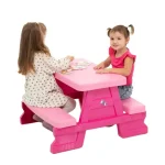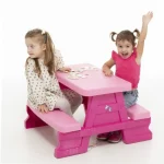 Masuta de Joacă pentru Copii cu Băncuțe – Design Picnic, Roz, Ideală pentru Interior și Exterior!