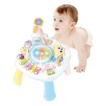- Lumini și sunete atractive – Măsuța este dotată cu efecte de lumină și sunet care atrag atenția micuțului și îi oferă o experiență multisenzorială.