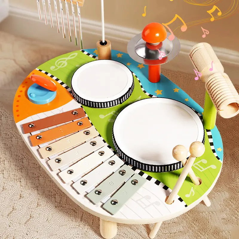 Ce include Masuta Interactiva cu Instrumente Muzicale din Lemn pentru Copii: