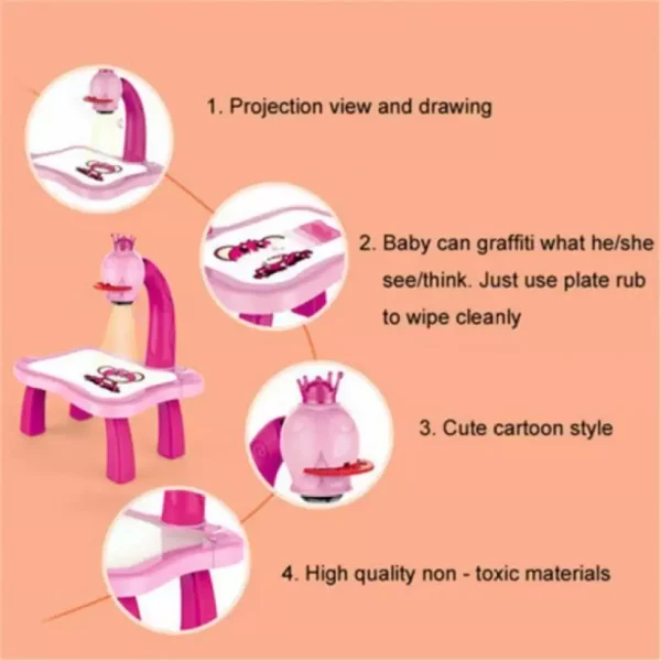 Masuta pentru Desenat cu Proiector Diapozitive este o jucarie care dezvolta imaginatia copilului si abilitatile micului pictor.