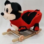 - Sanie cu roți: Mickey Mouse este montat pe o sanie cu roți, permițându-i să se deplaseze înainte și înapoi, ceea ce poate fi distractiv pentru copii.