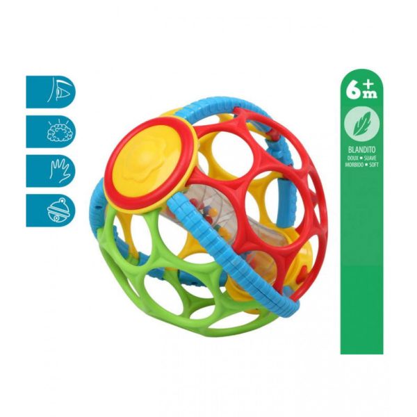 Cel mic se va familiariza treptat cu lumea sunetelor si a culorilor. In momentul in care este scuturata jucaria va zornai cu ajutorul margelutelor viu colorate din interiorul cilindrului.