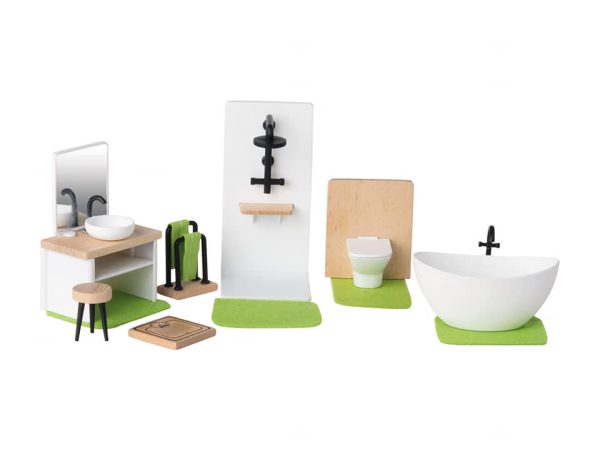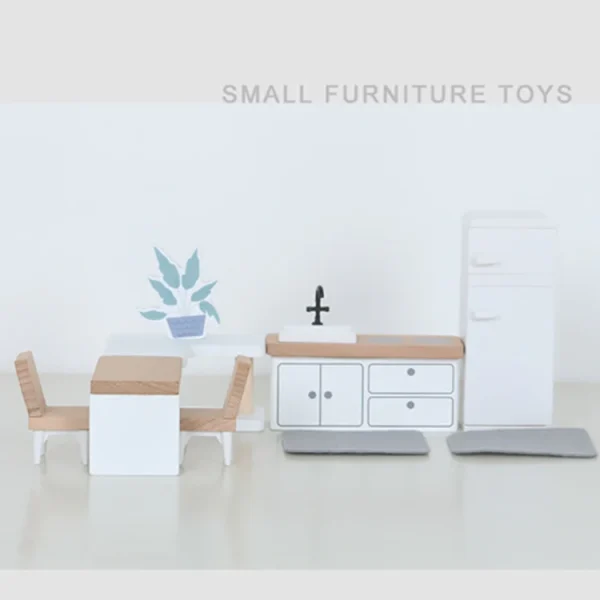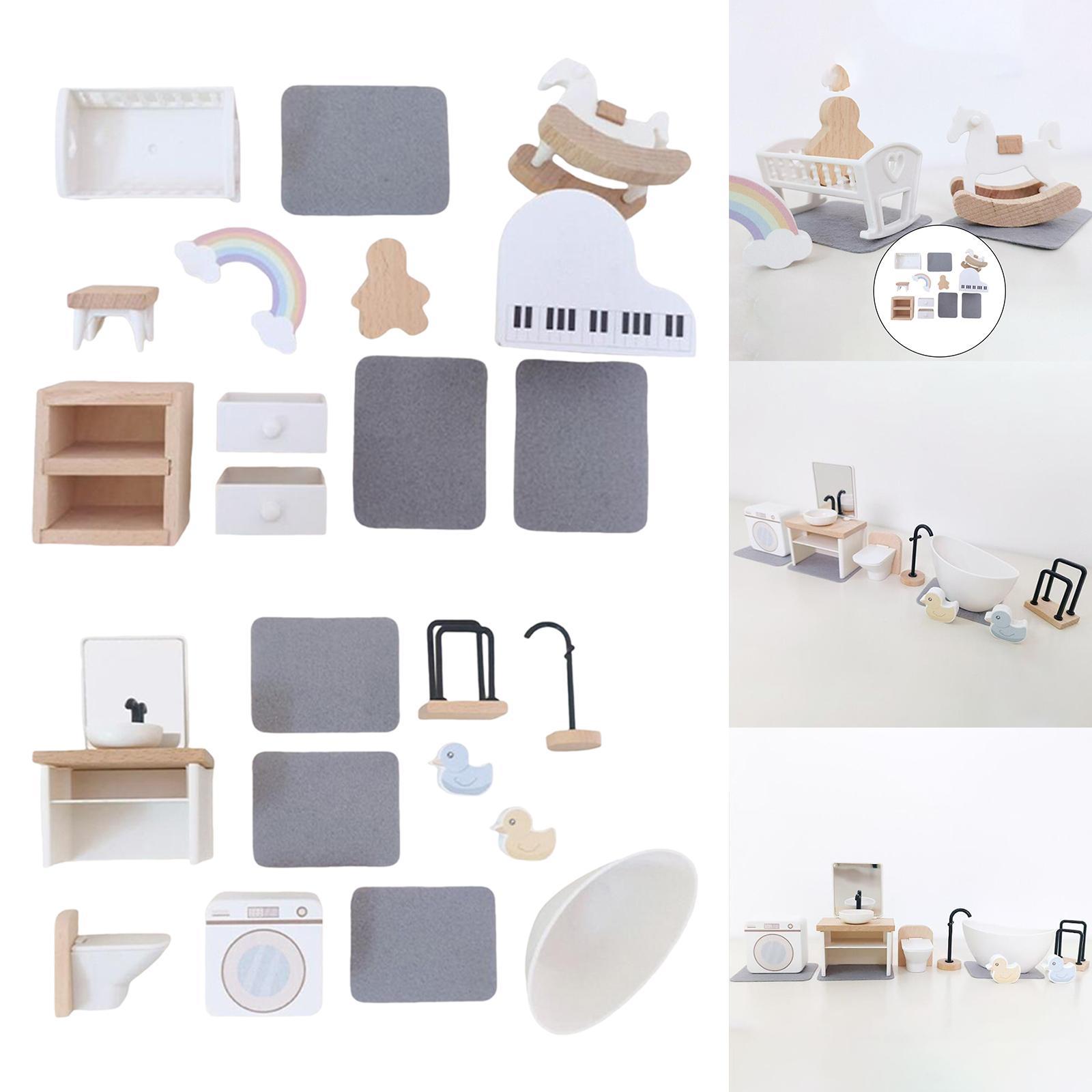 Setul de mobilier ,din lemn, de jucărie pentru păpuși este frumos proiectat, culori neutre în stil nordic scandinav, potrivit pentru toate modelele casei de păpuși.