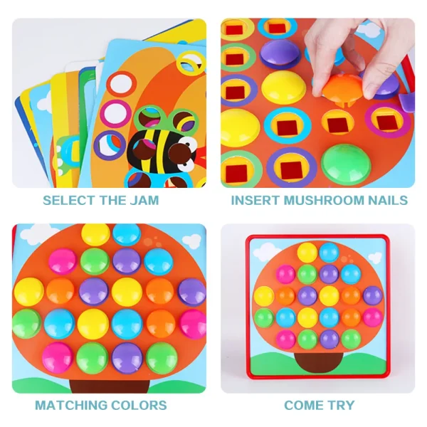 Joc Creativ Mozaic cu Butoni Lemn este usor de manevrat,incurajeaza gandirea creativa,imaginatia,creativitatea si concentrarea.