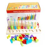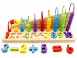 Ajuta la dezvoltarea memoriei, mentine atentia si ofera sprijin in operatiile matematice de adunare si scadere scrise pe panoul din lemn fata-verso.