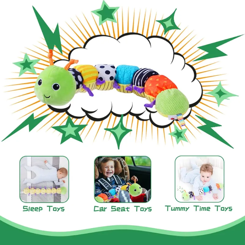 - Dezvoltarea abilităților motorii: Bebelușii pot să apuce, să strângă și să exploreze diferitele părți ale omidei, dezvoltând abilitățile motorii fine.