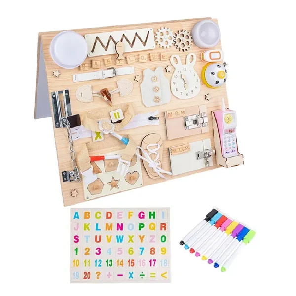 Panou Senzorial Busy Board si Tabla pentru Copii contine :