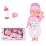 Această păpușică vine îmbrăcată în hăinuțe roz cu imprimeu simpatic, are biberon și suzetă incluse, fiind gata să devină „bebelul” preferat al micii mămici.
