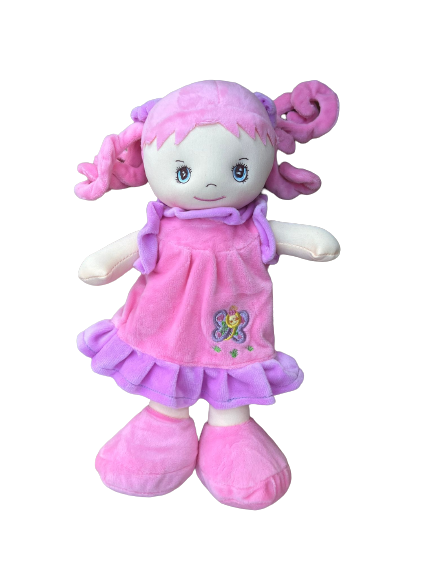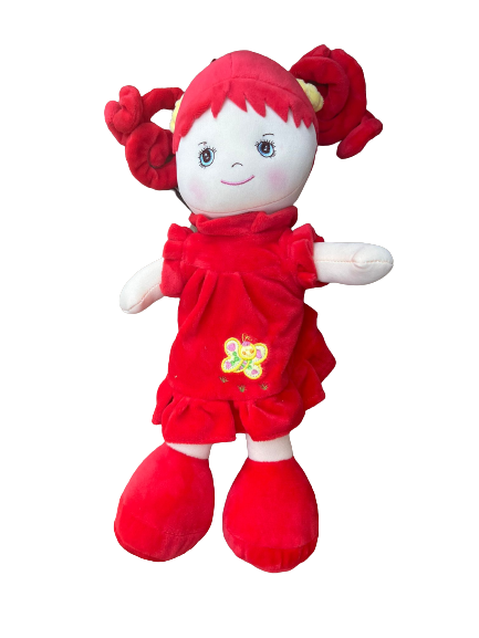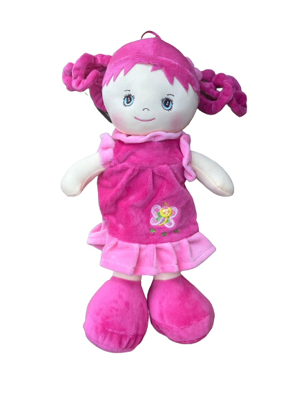 Papusa din Material Textil care Canta „Are Mama o Fetita” atunci cand este apasata pe burtica,reda melodia „are mama o fetita”.