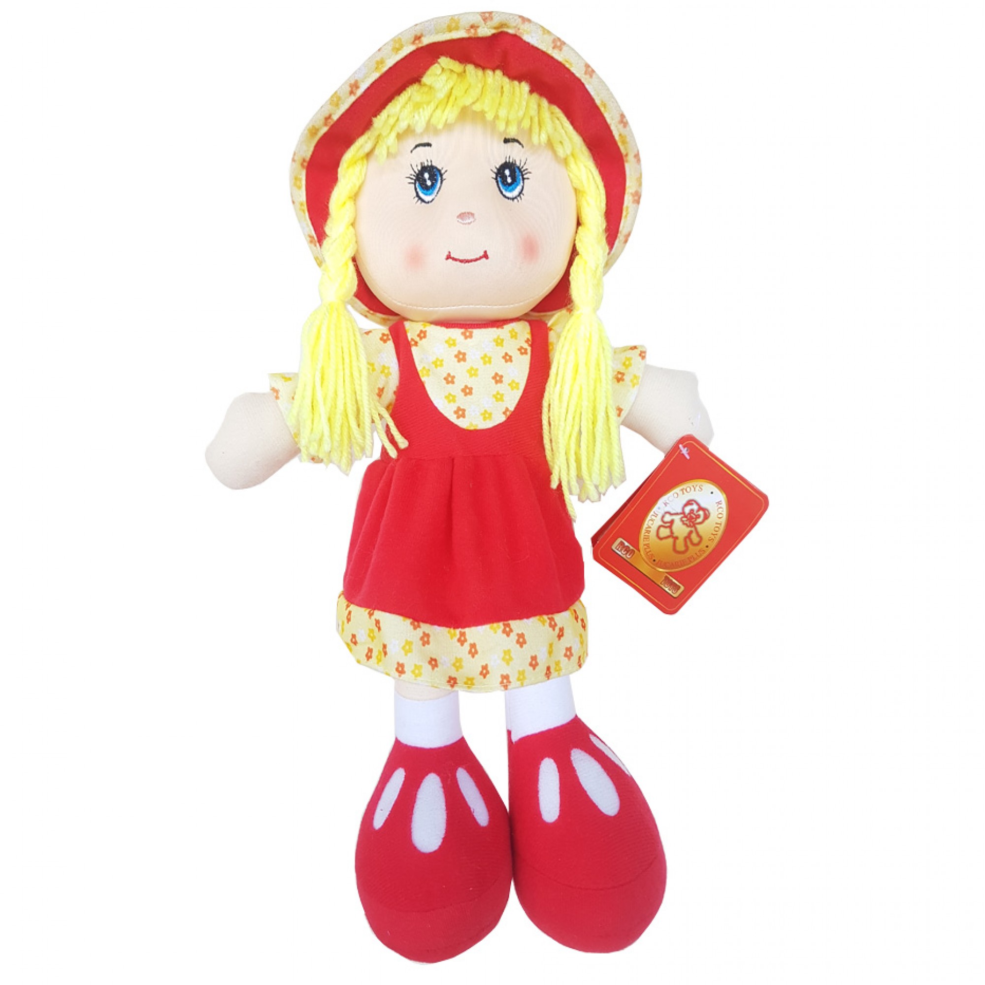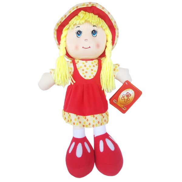 Papusa Material Textil care Canta Rochita Rosie 50cm