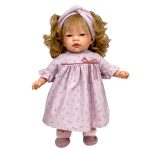 Papusa Nines D’Onil, Celia, cu parul blond, cu rochie roz, cu miros de vanilie, 45 cm.