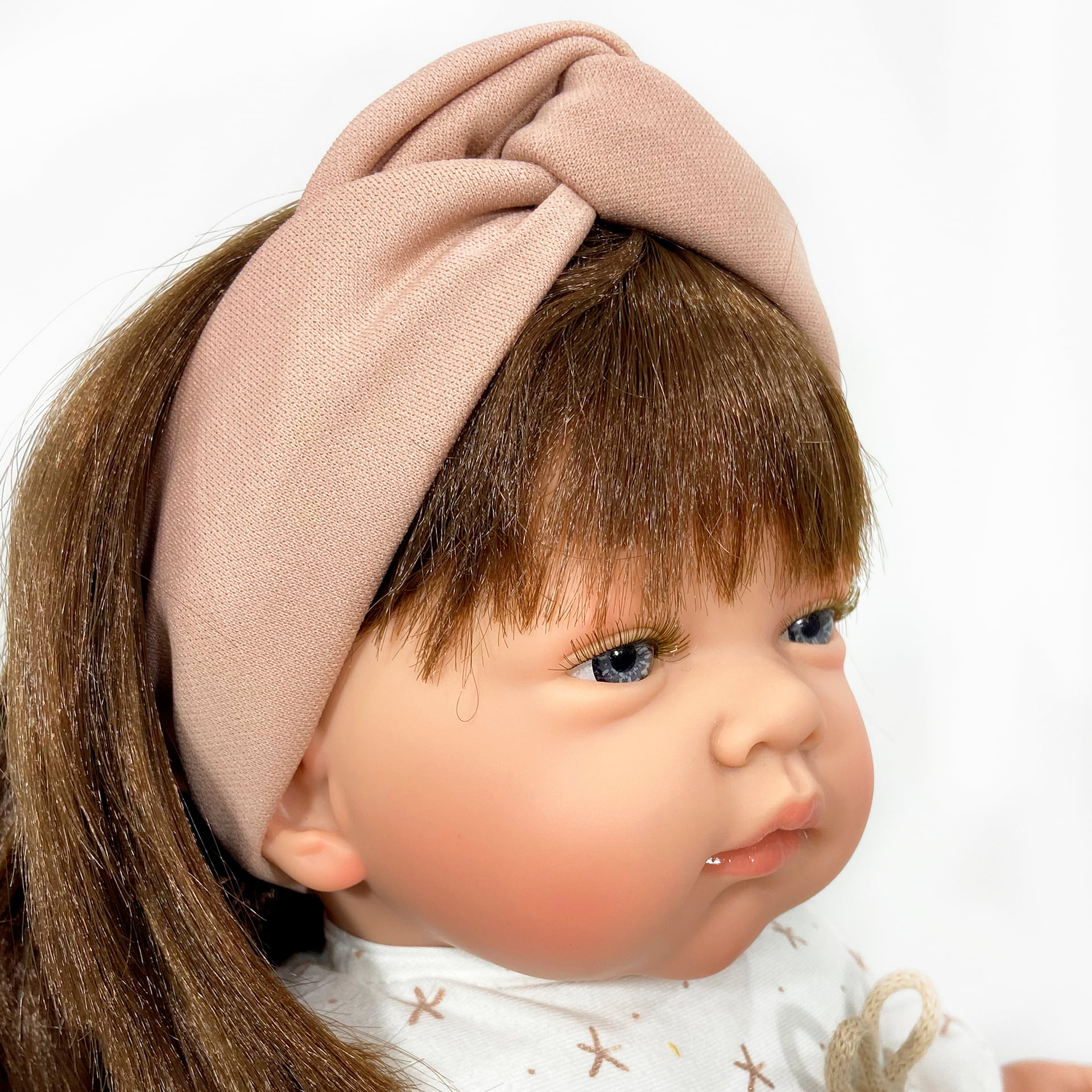Papusa Nines D’Onil, Celia, cu parul saten, cu rochie alba, cu miros de vanilie, 45 cm