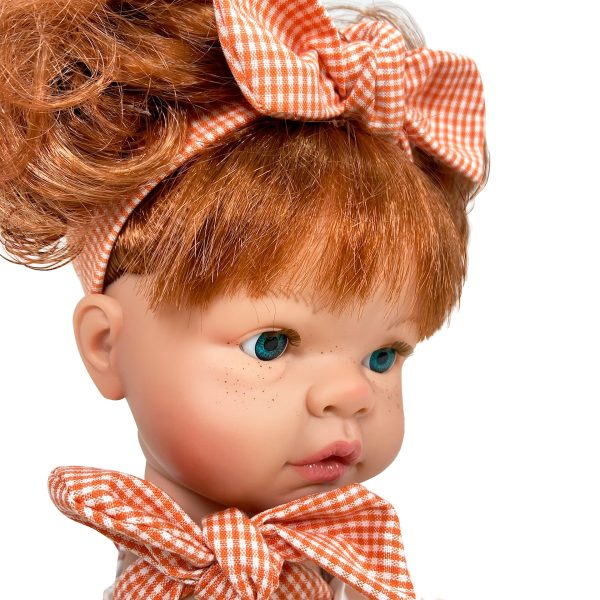 Papusa Nines D’Onil, Joy, cu parul roscat, cu fundita roz, cu miros de vanilie 37 cm