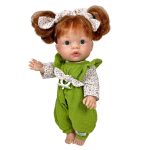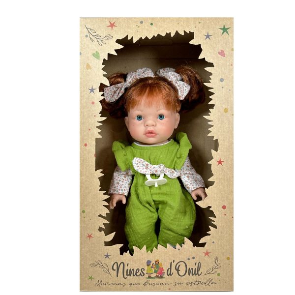 Papusa Nines D’Onil, Joy, cu parul roscat, cu salopeta verde, cu miros de vanilie 37 cm