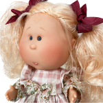 Papusa Nines D’Onil, Mia, cu parul blond si funde rosii, cu articulatii, cu miros de vanilie, 30 cm