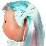 Papusa Nines D’Onil, Mia, cu parul roz si suvite verzi, cu articulatii, cu miros de vanilie, 30 cm.