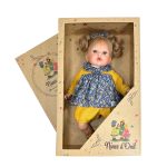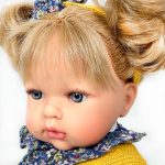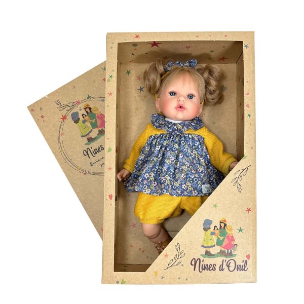 Papusa Nines D’Onil, Tita, cu sunete, cu parul blond, cu rochie albastra, cu miros de vanilie, 45 cm