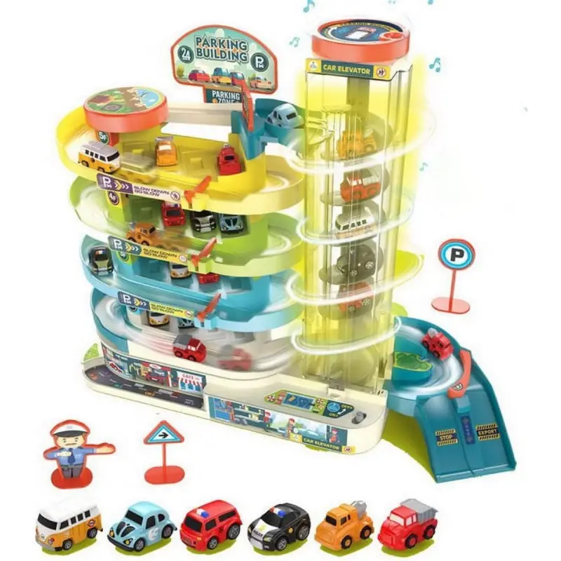 Parcare 4 Etaje cu Piste Lift 6 Masinute si Garaj – Super Garaj Interactiv pentru Copii cu Lumini si Sunete