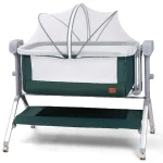 - Înălțime Reglabilă: Pătuțul poate fi ajustat pe înălțime pentru a se potrivi perfect cu patul părinților, facilitând accesul rapid și ușor la bebeluș, mai ales în timpul nopții. Această caracteristică este ideală pentru alăptare sau pentru a calma copilul fără a fi nevoie să te ridici din pat.