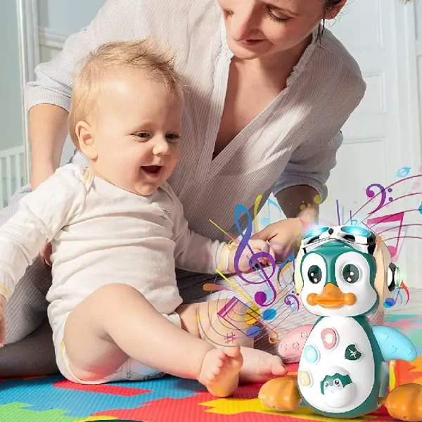 Acest pinguin interactiv este mai mult decât o jucărie – este complice în primele clipe de magie ale copilăriei.