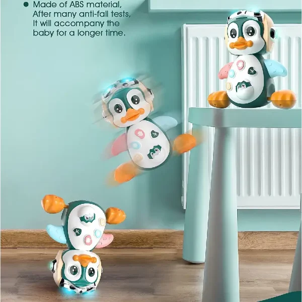 Grație roților mobile și funcției de mers automat, pinguinul „dansează” pe podea și îi încurajează pe cei mici să-l urmărească, promovând astfel mișcarea și dezvoltarea abilităților motorii.