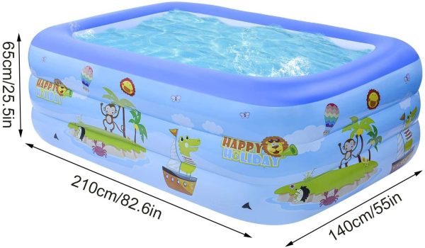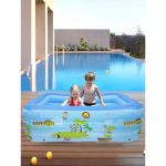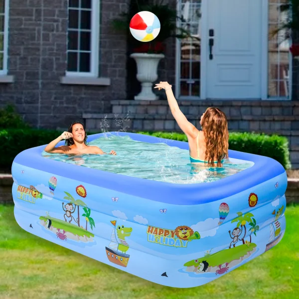 Această piscină gonflabilă este suficient de mare pentru 2 adulți și 3-5 copii și suficient de adânca pentru o petrecere la piscină în curte.