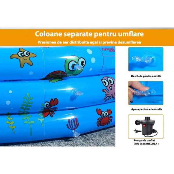 Usor de asamblat,cele 3 camere de aer ale piscinei,pot fi umplute cu ajutorul unei pompe de aer(nu este inclusa).