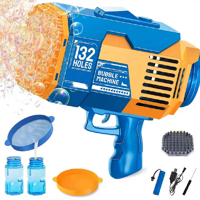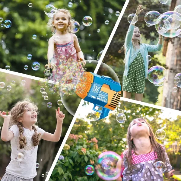 Pistolul cu 132 de orificii creează o adevărată explozie de bule colorate într-o clipă – cu un simplu apăsat de trăgaci.