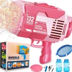 Pistol cu Baloane de Săpun 132/73 Orificii Roz – Jucărie cu Lumină LED, Baterie Reîncărcabilă și Accesorii | Caratoys