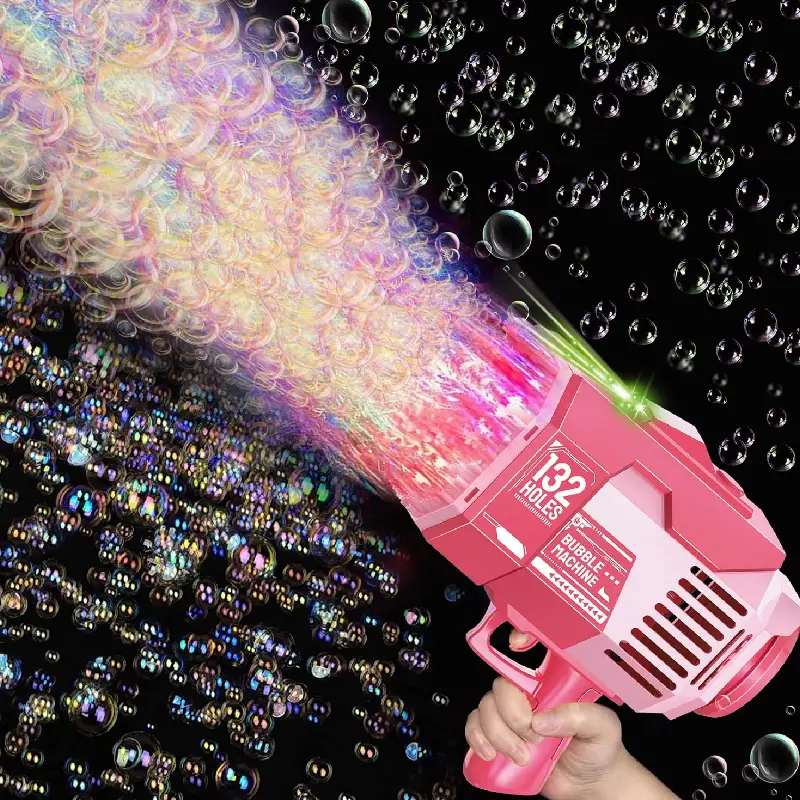Pistolul cu 132 de orificii creează o adevărată explozie de bule colorate într-o clipă – cu un simplu apăsat de trăgaci.
