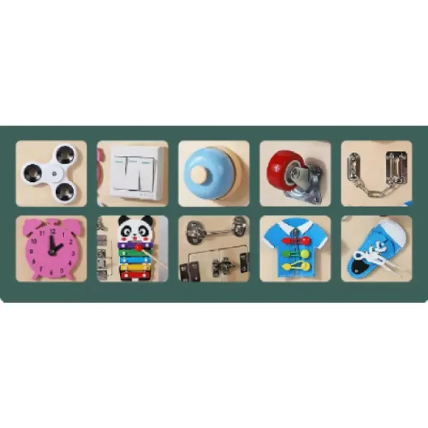 Fiecare element al plăcii este meticulos proiectat pentru a stimula simțurile și a promova dezvoltarea motorie fină a copilului tău.