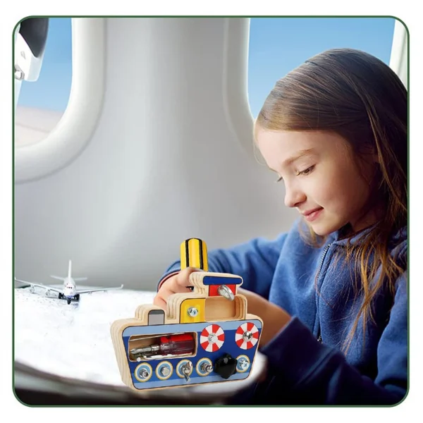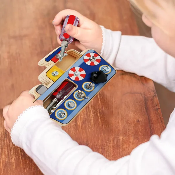 Placa Montessori îi poate învăța pe copii abilități practice în operarea sculelor de tamplarie.