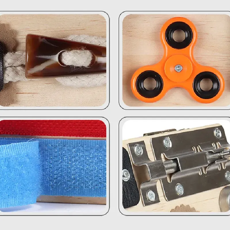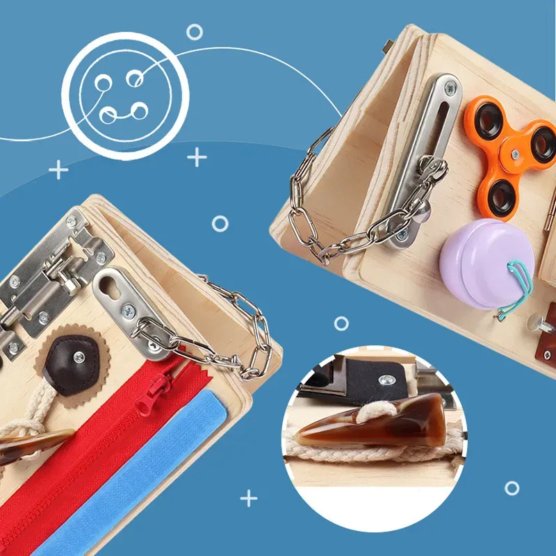 Busy Board-ul implică activități care necesită mișcări precise ale degetelor și mâinilor, cum ar fi închiderea fermoarelor,a cataramelor,etc.