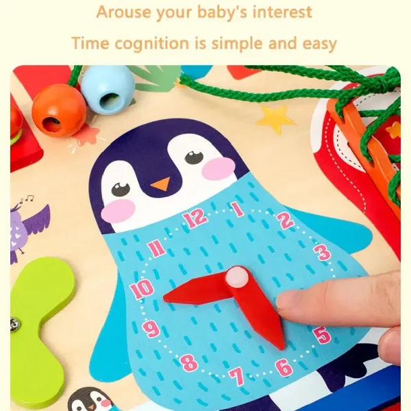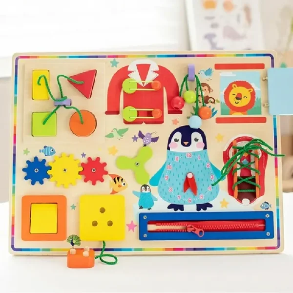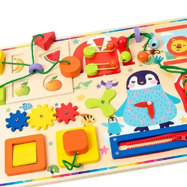 - Design tematic cu pinguin: Busy Board-ul poate are un design tematic cu un pinguin , ceea ce îl face atrăgător și familiar pentru copii.