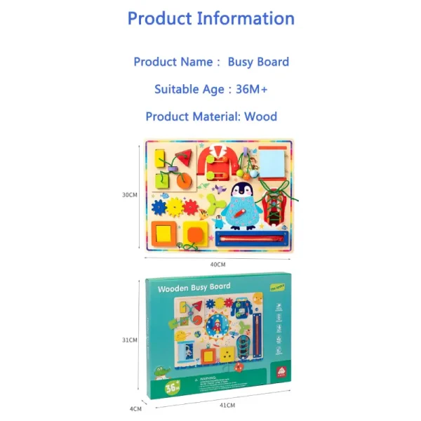 - Calitate și siguranță: Busy Board-ul este fabricat din materiale sigure pentru copii și construit cu atenție la detalii pentru a evita riscul de accidente sau destrămări.
