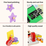 Elementele din lemn pentru plăcuțe au fost proiectate cu atenție pentru a dezvolta abilitățile motorii și abilitățile cognitive ale copiilor.
