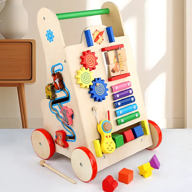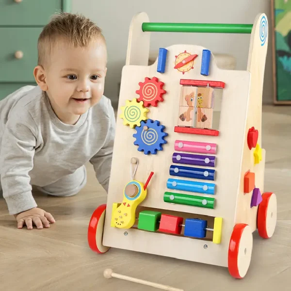 Cu premergătorul Montessori din lemn 8 în 1, copilul tău pornește în cea mai frumoasă aventură – o călătorie prin muzică, forme, culori, logică și joc activ.