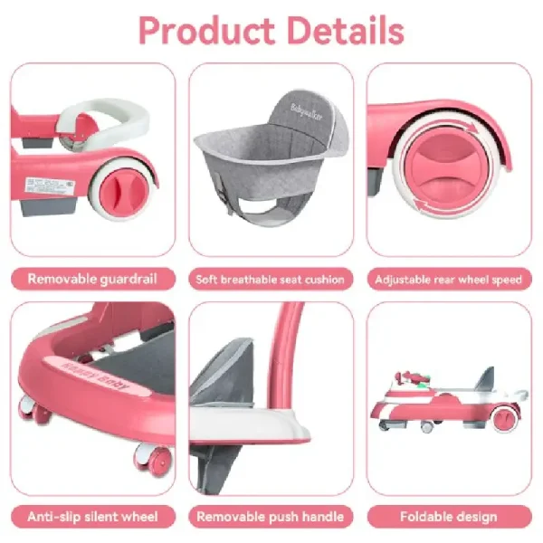 Caracteristici Premergător Roz Multifuncțional 5 în 1 pentru Bebeluși: