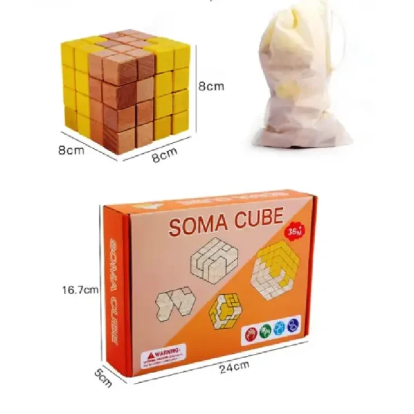 Puzzle 3D din Lemn pentru Dezvoltarea Inteligenței – Soma Cube – Puzzle 3D Inteligent pentru Toate Vârstele!
