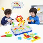 A doua opțiune este, desigur, șurubelnița, șuruburi și șaibe de diferite culori permit stimularea simțului văzului și încurajarea jocului.