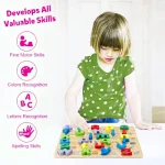 Puzzle Incastru din Lemn cu Litere Mici si Ilustratii